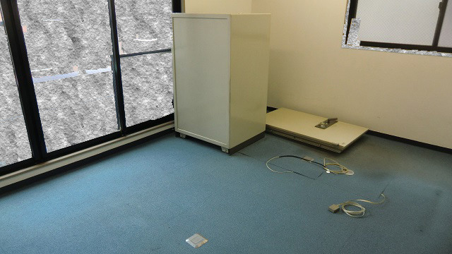 お電話頂きお伺いしたところドアが外れておりました。お客様自身で外されたのか聞いてみると別のネット回収業者様が外して行かれたとの事。電話では問題無いと申してたらしいですが2人でドアを外した瞬間「無理やな~」と言って帰ってしまったそうです。その通り2人で道具も無く人力だけで360kgの金庫を下ろす事はプロレスラーでも無理でしょう。