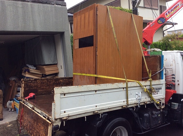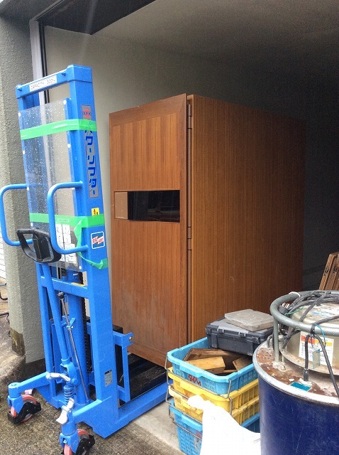 骨董商様からの依頼でクマヒラ製美術品保管金庫の処分を行いました。通常の金庫とは違い奥行が深く屏風等も保管が出来る珍しいタイプの金庫です。